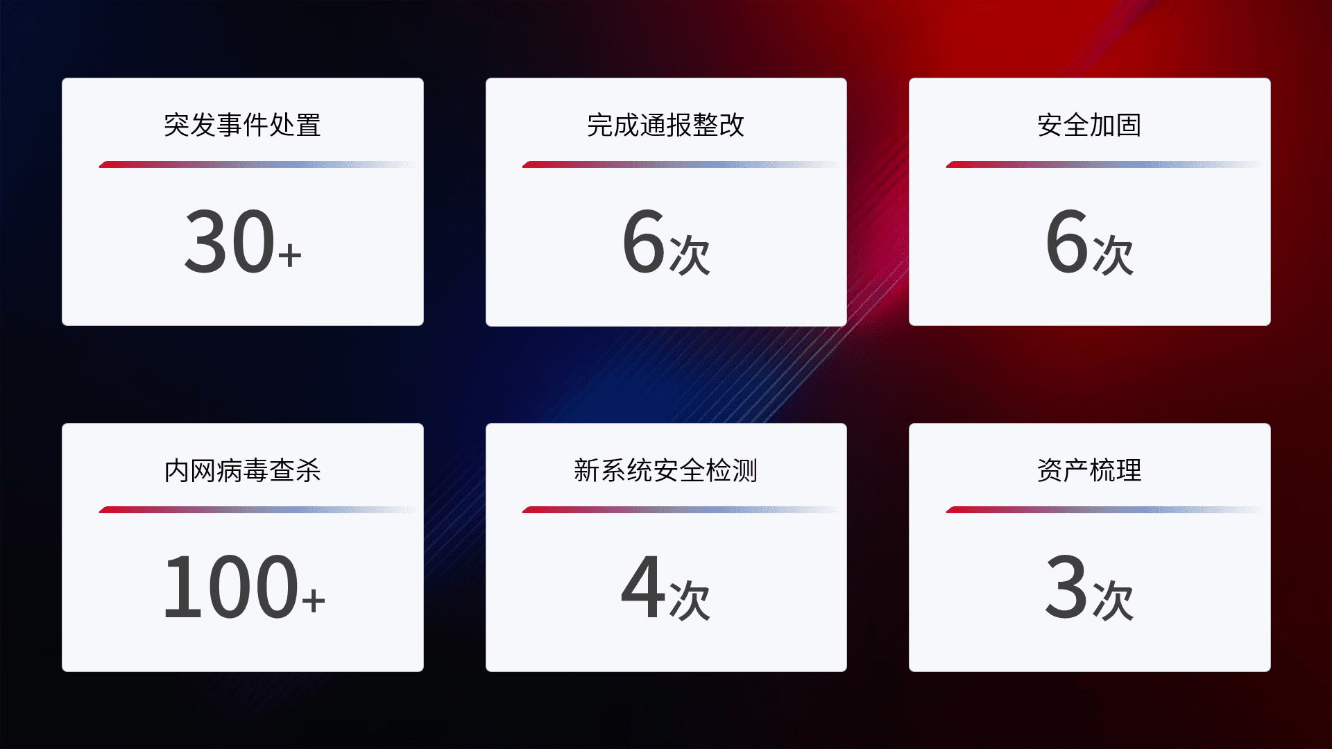 根据客户需求定制整改方案,,,强化应急演练,,提升网络安全事件应对能力。。